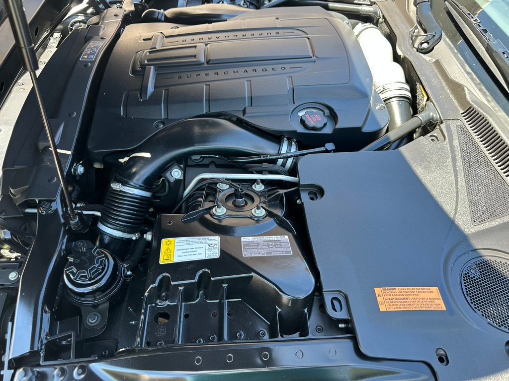 The supercharged and intercooled AJ-8 4.2-liter V8 was rated at 420 horsepower and 413 lb-ft of torque. April 2023 maintenance updates include an oil change along with the replacement of the air conditioning compressor, drier, and battery. Power is sent to the rear wheels via a console-shifted six-speed automatic transmission.