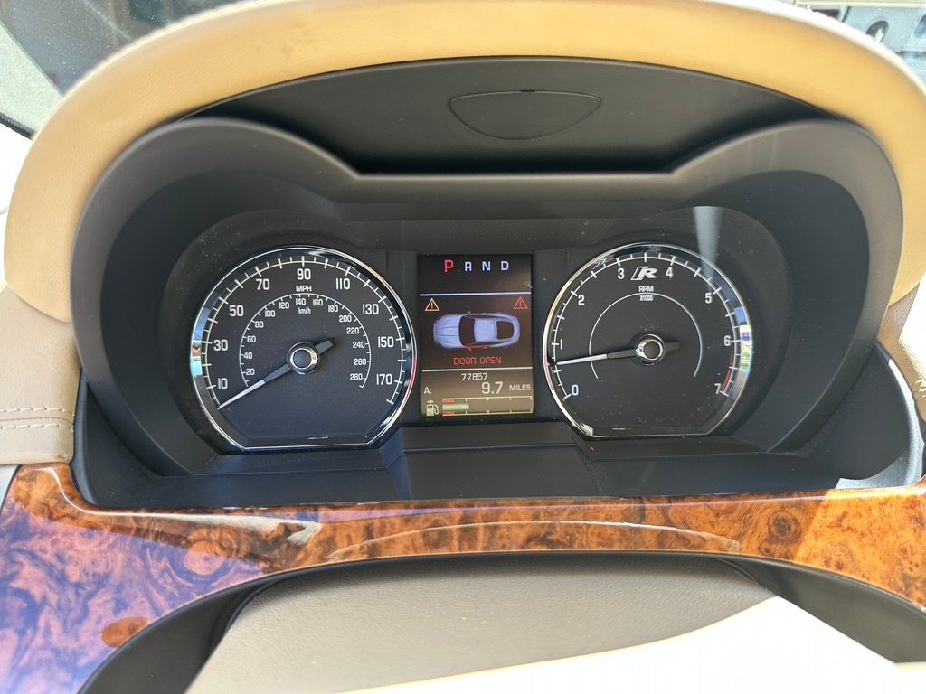 Instrumentation includes a 180-mph speedometer, 7,000-rpm tachometer, and a configurable digital display for other pertinent information. The digital odometer reads 77,857 miles, with a recent CARFAX report confirming the mileage.