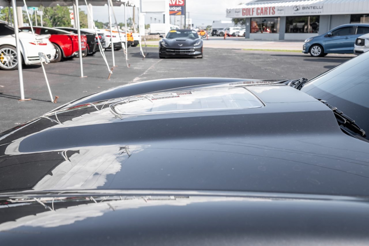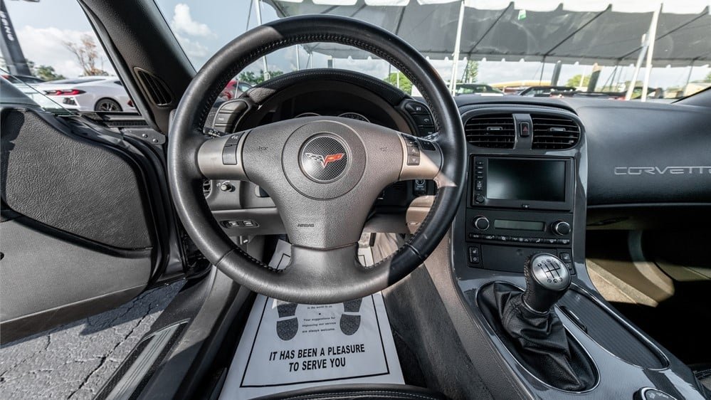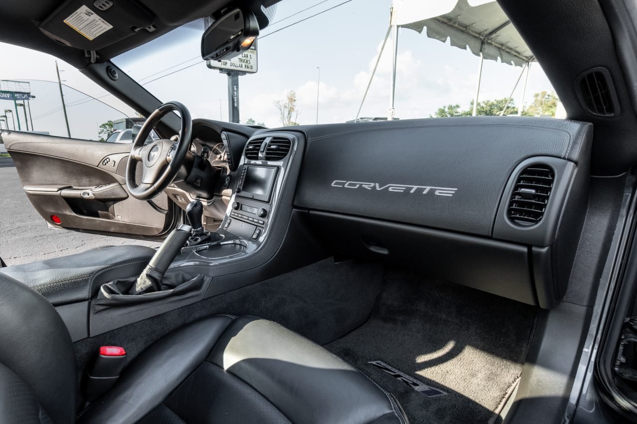 The ZR1 was not your average Corvette as it features from the factory a lightweight carbon fiber hood and roof, carbon fiber fenders, and carbon fiber floor panels. Additional features include a carbon fiber front splitter, HID headlamps, daytime running lamps, fog lights, a clear window in the hood, vented front fenders, a lip spoiler, and quad exhaust outlets. It runs on original ZR1-specific chromed aluminum wheels measure 19 inches in diameter up front and 20 inches in the rear and are wrapped in new 285/30 front and 335/25 rear Michelin tires that were installed in May 2023.