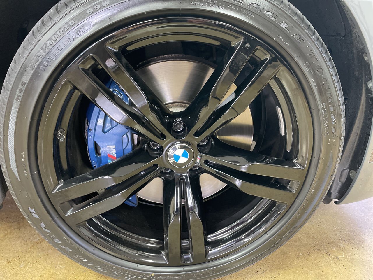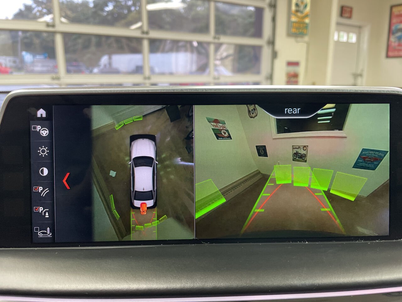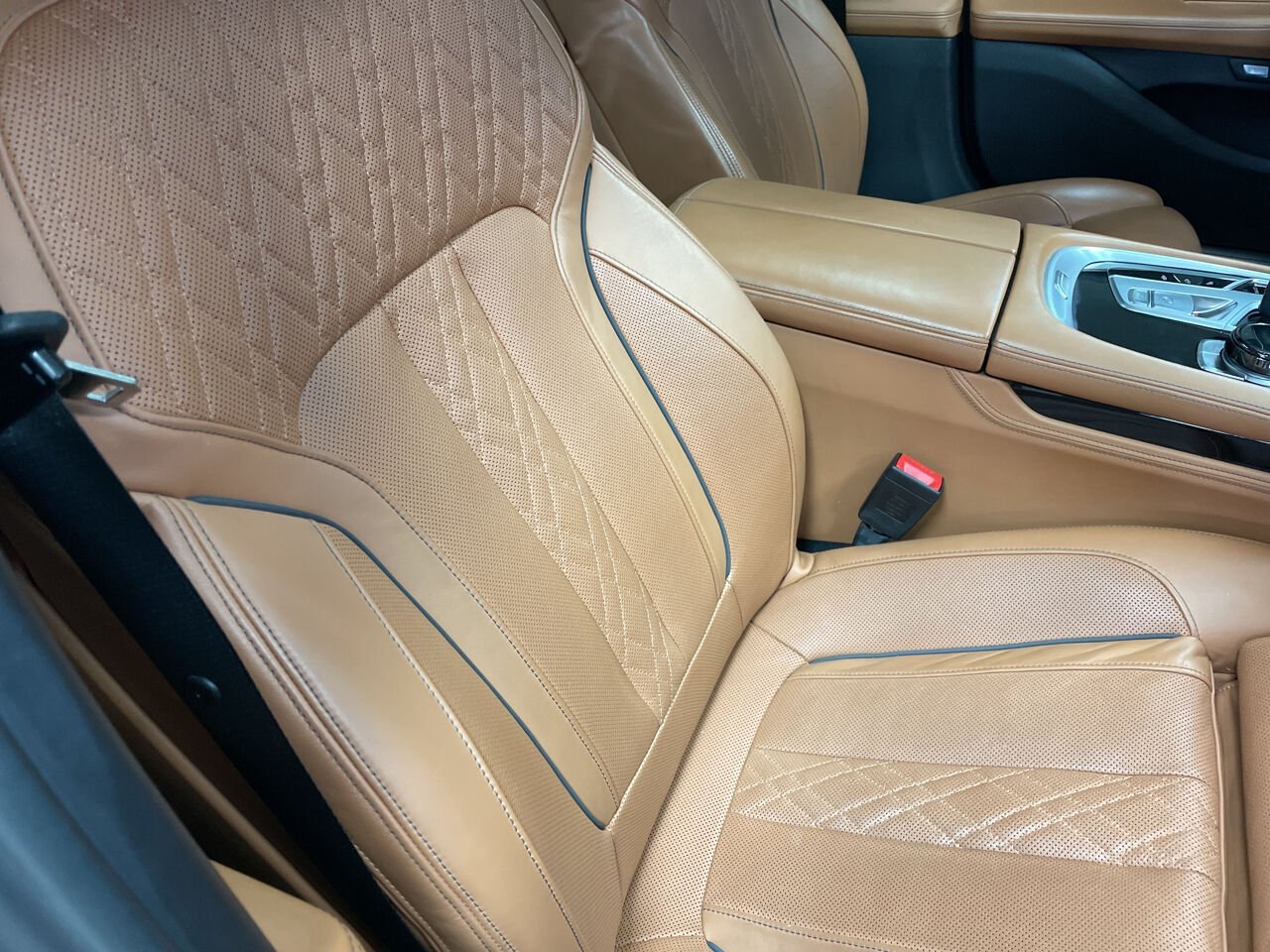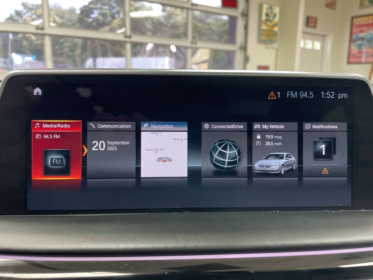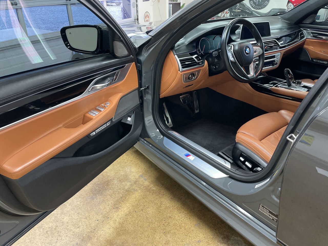 The exterior of this 750i features adaptive LED lighting, soft-close doors, power-folding mirrors, and dual black exhaust outlets. They add that there is a small scratch on the hood that is shown in the photos in the ad. The car rides on its original M Sport Package-specific black 20-inch wheels with 245/40 front and 275/35 rear Goodyear tires.