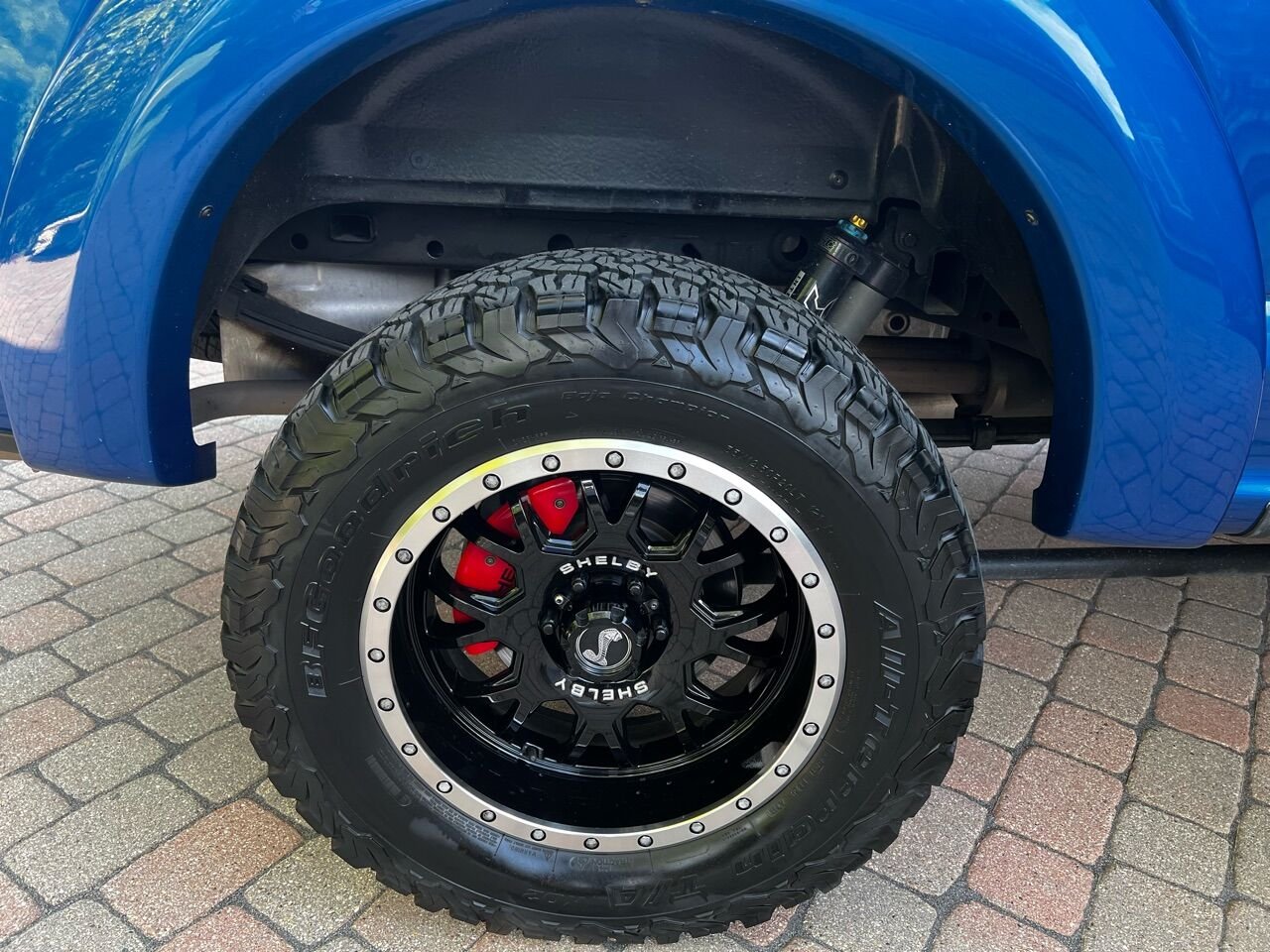 Shelby-branded 20-inch black wheels with polished lips are wrapped in 35-inch BFGoodrich All-Terrain T/A KO2 tires.