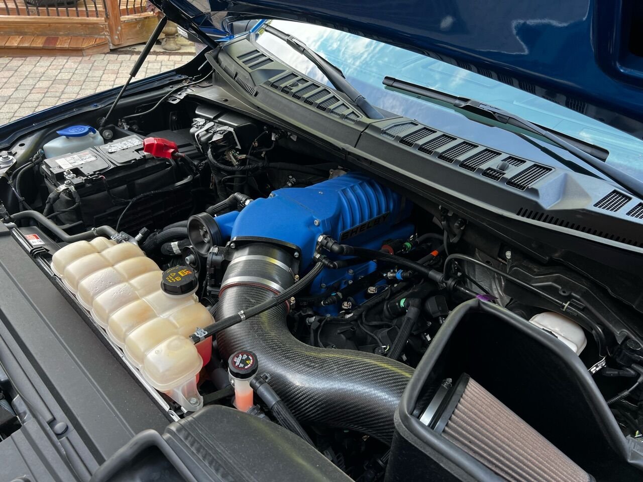 The Whipple-supercharged 5.0-liter Coyote V8 includes an engine block heater, high-performance fuel injectors, billet throttle body, Shelby Performance tune and Borla dual exhaust system. Power is sent to all four wheels via a 10-speed SelectShift automatic transmission, dual-range transfer case and electronic locking rear axle.