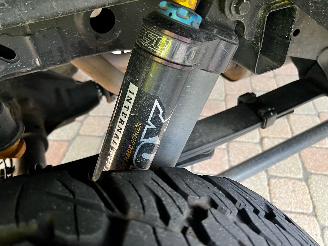 The suspension has been upgraded with a four-inch BDS lift kit and uses 2.5-inch Fox internal-bypass shock absorbers. Stopping power comes from four-wheel anti-lock disc brakes with red calipers.