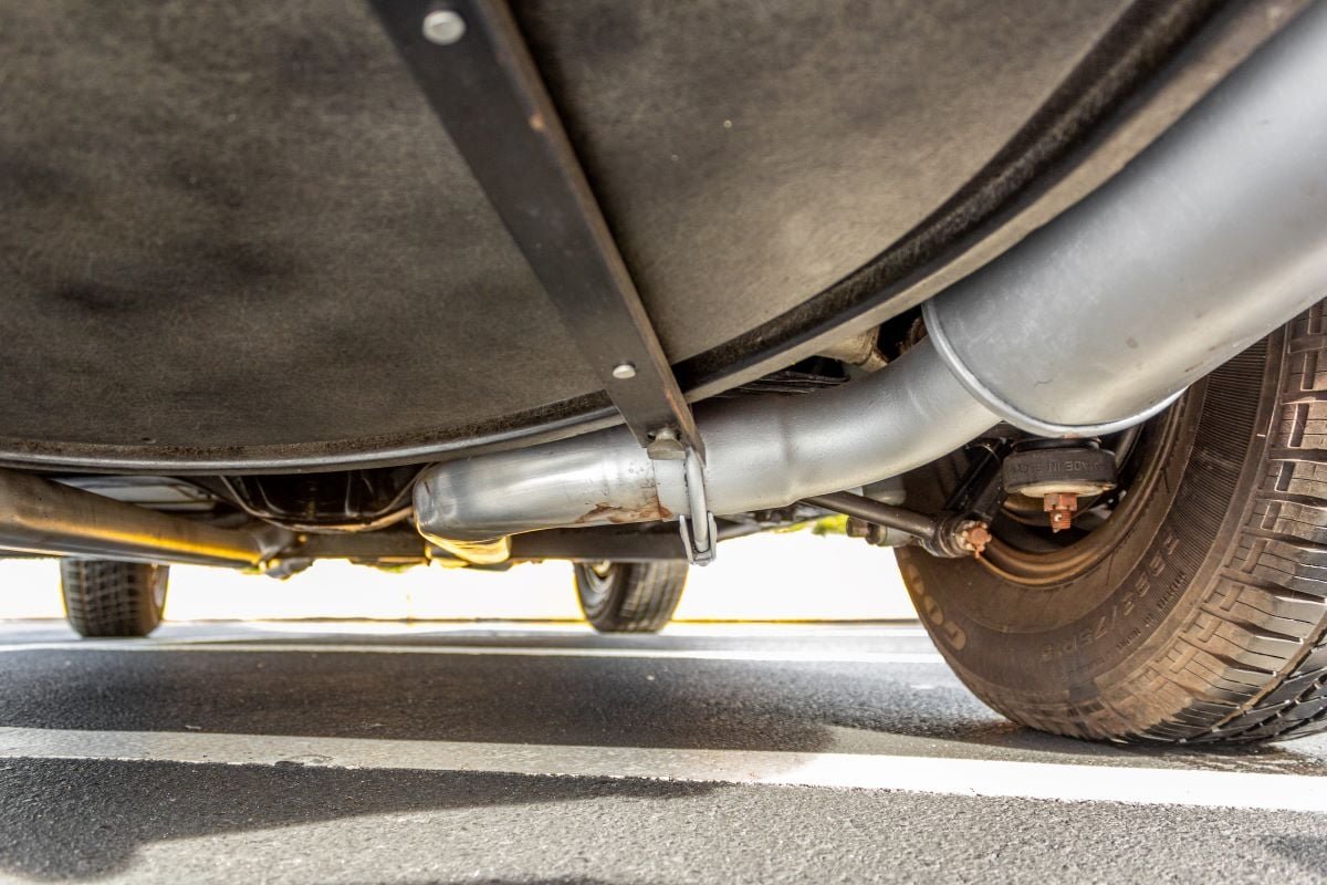 Code P48 15-inch Kelsey-Hayes cast-aluminum knock-offs are wrapped in P225/75R15 Goodyear Viva 2 whitewall radial tires.