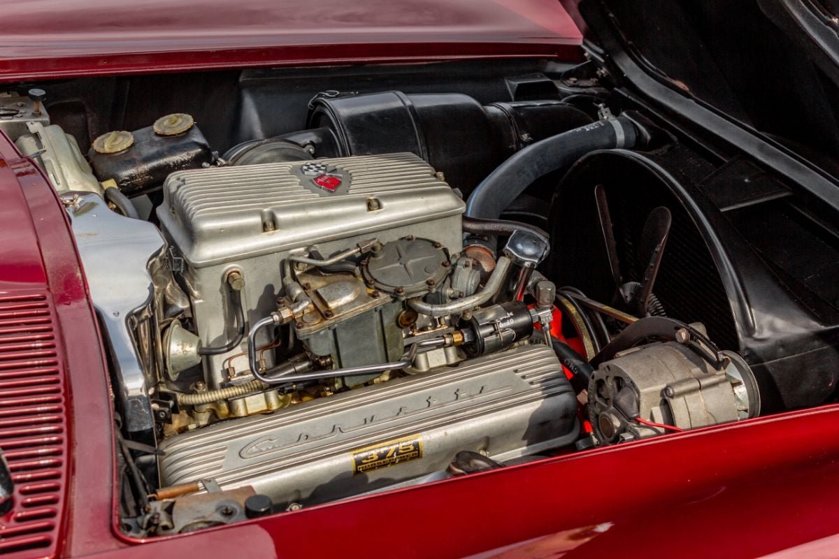 According to the seller, this Corvette features the numbers-matching drivetrain, which consists of the solid-lifter, 375-horsepower L84 327cid V8 equipped with Rochester fuel injection. Shifting is handled by a Muncie M20 four-speed manual gearbox. Photos in the gallery on the auction page show the small-block with the proper HG suffix.