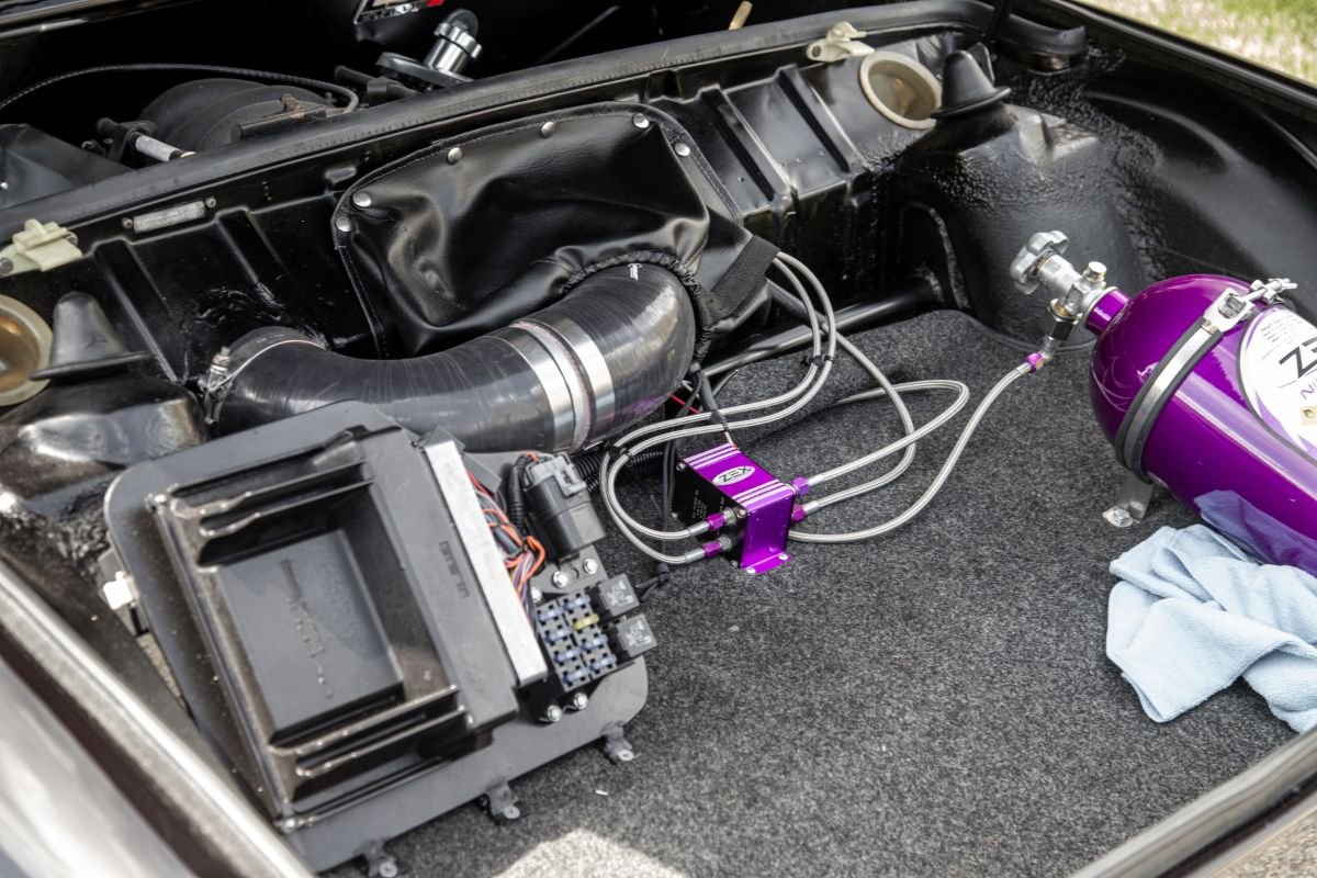 The nitrous-injected LS1 5.7-liter V8 has received an oil change from the seller in recent weeks. The engine comes with upgrades that include a performance camshaft, CNC-ported heads, custom wiring harness and computer. Power is transferred to the rear wheels via a six-speed manual transmission that was sourced from a Porsche Boxster S, along with custom axles and CV joints.