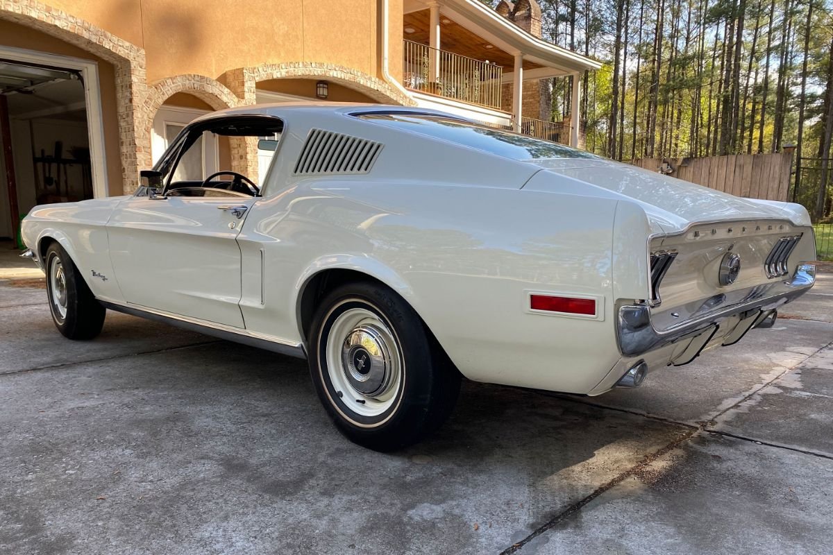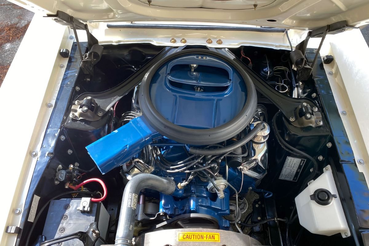 On December 27, 1967, Ford Motor Company built 50 white Mustang fastbacks with the 428 Cobra Jet, an engine that was not yet offered to the public. All were Wimbledon White with 428 CJ, four-speed manual, black interior, Traction-Lock with 3.89 gears, and ram air induction. Twenty of the 50 were built without sealer and sound deadener. Several participated and won at the 1968 NHRA Winternationals on February 2-4 in Pomona, California. Come April 1968, the 428 CJ was unleashed to the general public, now available on any Mustang body style, requiring the GT package, and featuring a black stripe on the hood. Over time, those 50 cars have acquired the designation “135 Mustangs” due to the prefix of their sequence numbers. This restored example is one of the 20 “lightweight” cars, originally delivered new at Russ David Ford in Covina, California.