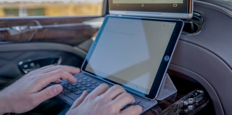 The company claims the setup will allow clients to connect to video calls, be present in multiple meetings, access cloud-based services, or stream multiple high-definition online videos all from the comfort of the back seat, even when barrelling along at 110km/h or more.