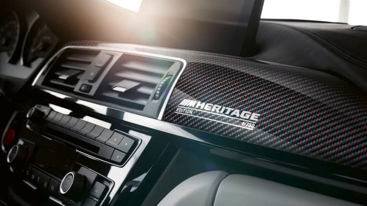 In addition to the unique colourways, all versions of the M4 M Heritage Edition get bespoke carbon-fibre trim with BMW M tri-color pinstriping, an M Carbon Roof with BMW M tri-colour accents, 20-inch M light forged alloys in Orbit Grey, ‘Edition ///M Heritage 1/750’ lettering on the cabin trim inserts and door sills, and wireless smartphone charging.