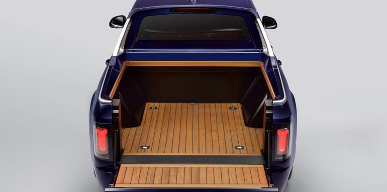 The concept is about 100mm longer than the donor vehicle, and features a cargo tray lined with handcrafted teak panels and trim strips made from SLS 3D pressure components.