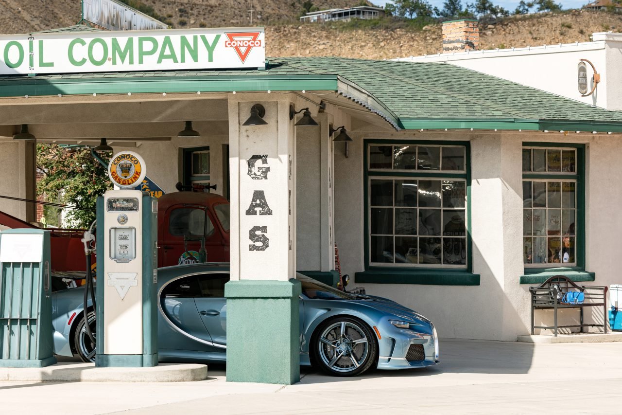The four-day Bugatti Grand Tour America 2023 set off from The Lodge at Blue Sky in Park City, Utah – a resort built in the foothills of the Wasatch mountains – heading towards the vast sandstone formations of Moab. First stop, Helper, Utah, where guests discovered the irresistible beauty of a 1924 Conoco Station. Meticulously restored to its former splendor, the prominent landmark stands as a bookend to Helper’s historic Main Street.