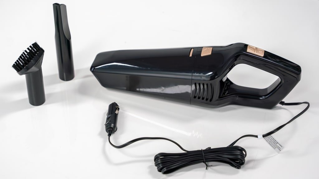 There are no batteries in sight, and instead you power the vacuum by plugging it into your car’s 12-volt outlet.