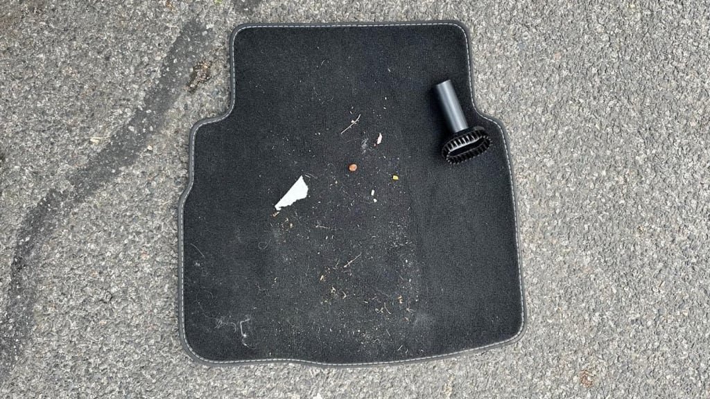 I started by testing the vacuum sans attachment, just using the in-built circular opening to suck up all manner of horrors from my car’s floor mats.
