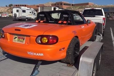 Engine swapping is common practice in the world of automotive tuning. If you’re inventive enough and your pockets are adequately deep, the sky is the limit when it comes to taking one engine and shoving it in the engine bay of another car. While some swaps make more sense than others, those that really grab our attention are those that, on paper, shouldn’t work. That’s why this particular 1999 Mazda Miata NB helped our eyebrows reach skyscraper heights. What you see piercing through the hood of the diminutive Japanese sports car is none other than the impressive