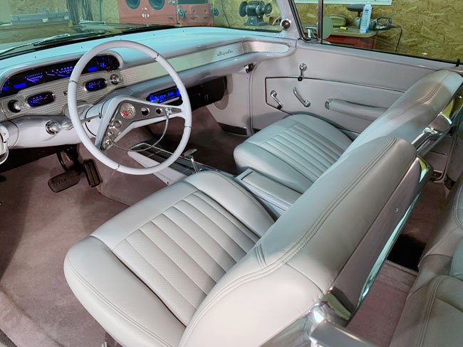 A lot of time and thought was put into interior. Most custom interiors are made to look modern. Matlack and Kiblinger wanted this interior to look vintage using early 1960s Impala parts. The goal was to have people wonder: “Did Impalas come with bucket seats and console”? Or this how the interior should have looked like in 1958.