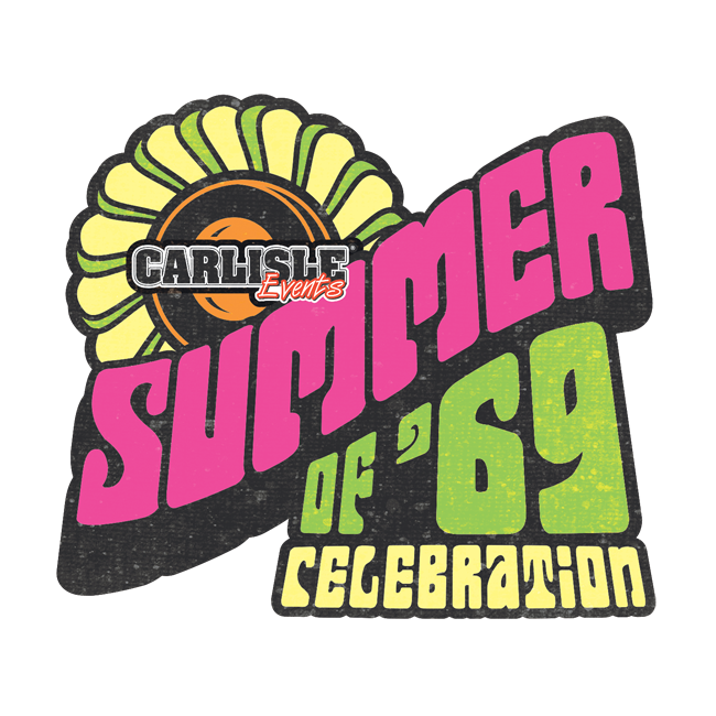 Common themes across all events include branding and special graphics specific to the theme. This includes flags around the grounds, plus signs and banners near main entry gates. As part of each event, a “Flash Sale” will pop up on social media. From there, the first 69 people to order tickets online will also get a commemorative Summer of ’69 souvenir cup. In addition, a limited amount of cups will be available with a qualifying purchase in the Carlisle Store. The cup will also be available as a stand-alone purchase from any concessionaire too. Another season long giveaway will be a special Summer of ’69 sticker. These stickers will be available on grounds as well as in Guest Services for registered showfield participants.