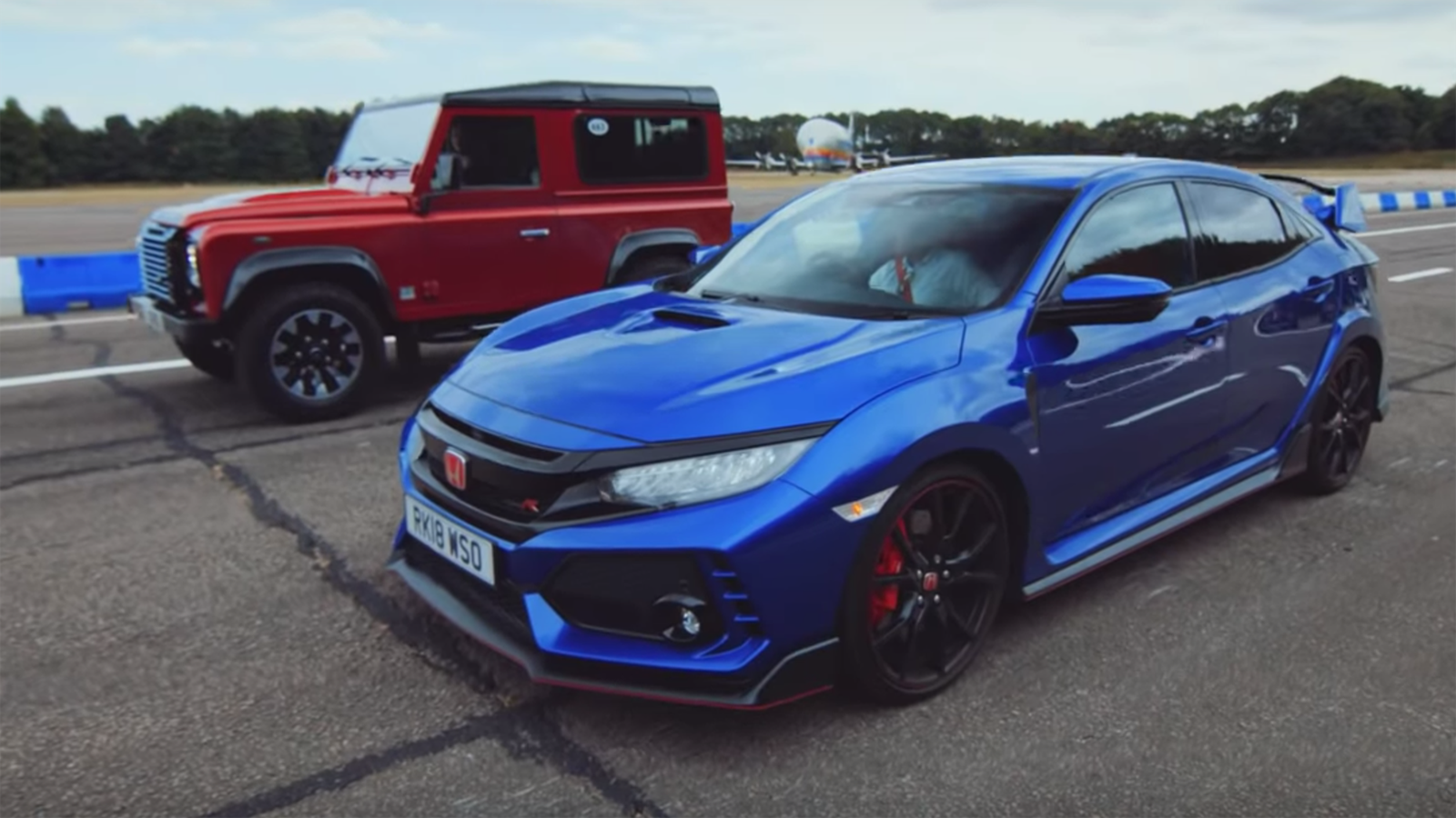 In what’s one of the weirdest match-ups in drag race history, Top Gear has lined up the UK-built hatch against a Land Rover Defender – what?!