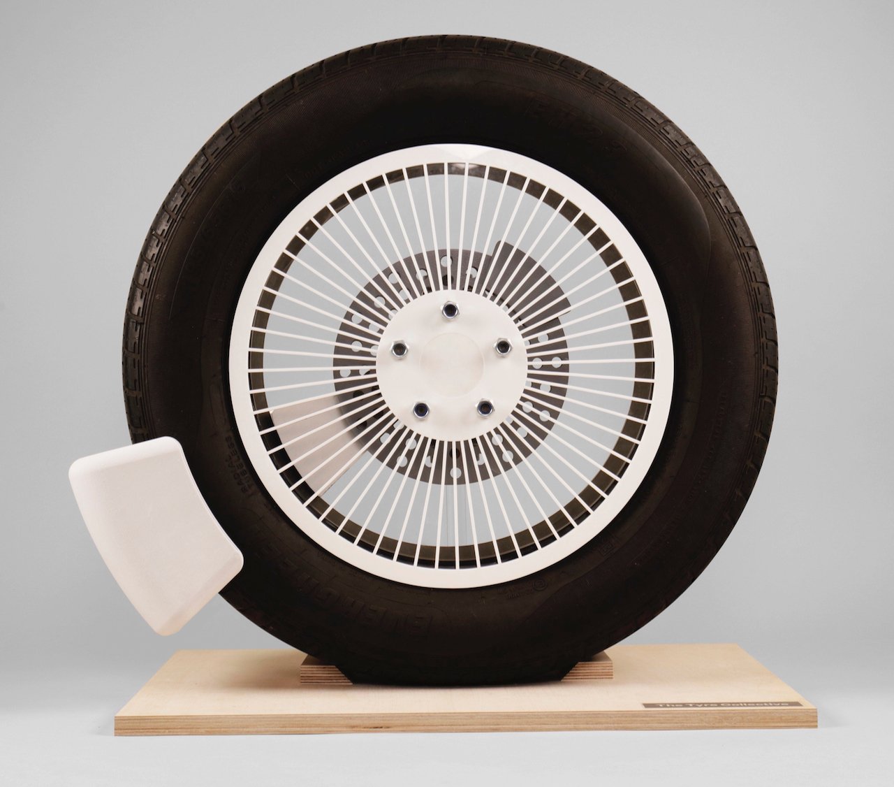 After discerning that because of friction with the road surface, the bits being shed by tires have a positive electrical charge, the group created a device that attracts and collects those particles. The device — the prototype looks like a very strange mud shield — is positioned immediately behind each tire. The collective notes that the material collected by the device can be recycled.