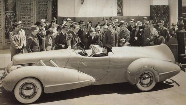 In the 1930s, film-star owners such as Johnny Weissmuller, Al Jolson and Clark Gable were drawn to the ‘coffin-nosed’ Cords and tycoon Howard Hughes was fascinated by the new technology used in the cars with front wheel drive, new gearing and suspension and concealed headlamps and door handles, all within a beautiful streamlined shape. The avant-garde design of the Cord motivated the Museum of Modern Art in New York to honored the 810 as ‘an outstanding American contribution to automobile design’ in 1951. The innovative coffin-nose design has left its mark on pop culture inspiring the design of the original comic book version of the Batmobile and more than one Sony PlayStation video games as well as music, books and movies like James Leasor’s Where the Spies Are and The Godfather.