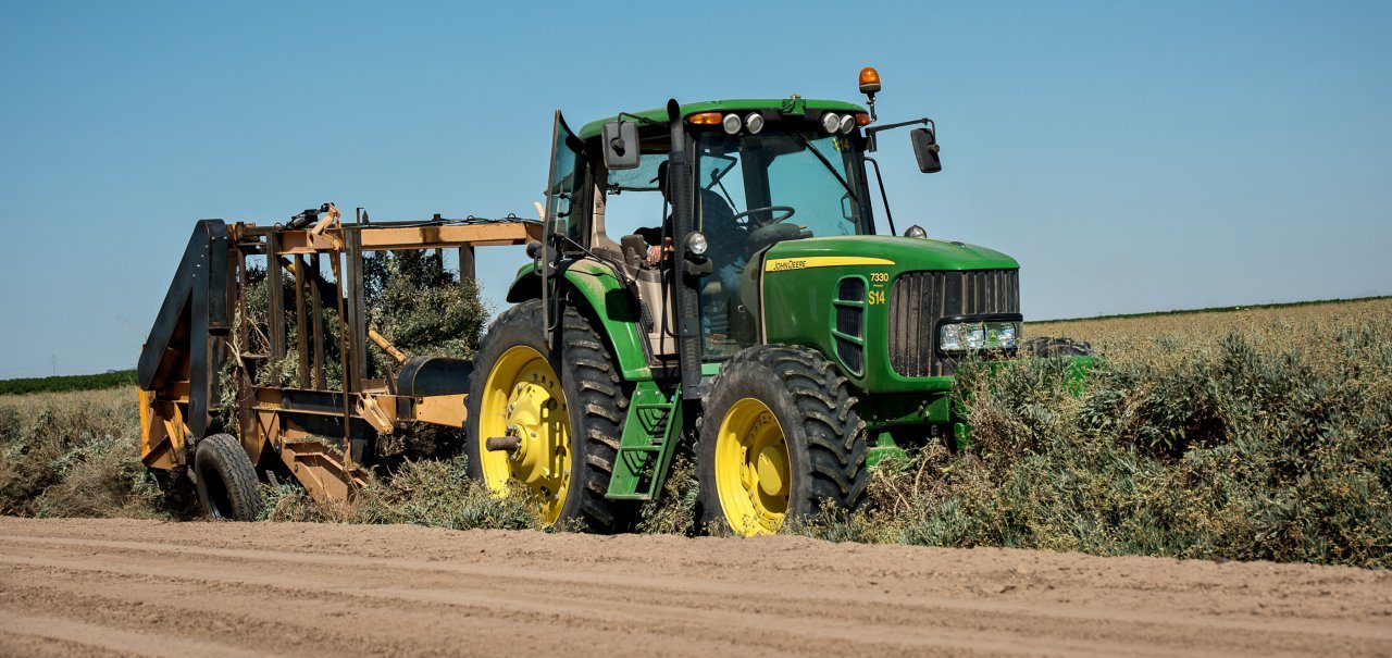 The farm grows guayule. The research center processes the harvested plants to extract latex and other products.