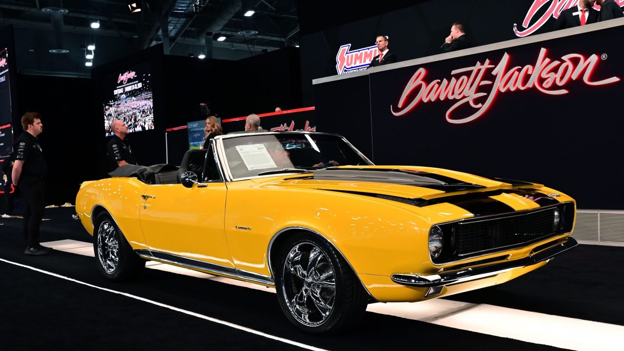 Nearly 200 extraordinary collector vehicles graced the legendary auction block today, spanning from awe-inspiring muscle cars to breathtaking Resto-Mods and one-of-a-kind gems. Taking the spotlight on Friday was a 1967 Chevrolet Camaro custom convertible (Lot #407) achieving top honors with a sale price of $135,300.