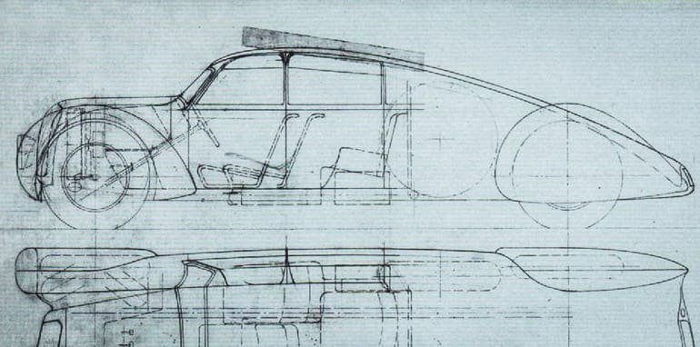 Type 52 Prototype sketch by Ferdinand Porsche (1934)