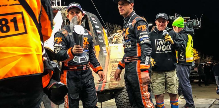 It was of course pitch black when race winner Justin Lofton pulled his Unlimited Series Truck onto the podium in a time of 5:24:26, and became the first-ever three-time winner of the Mint 400.