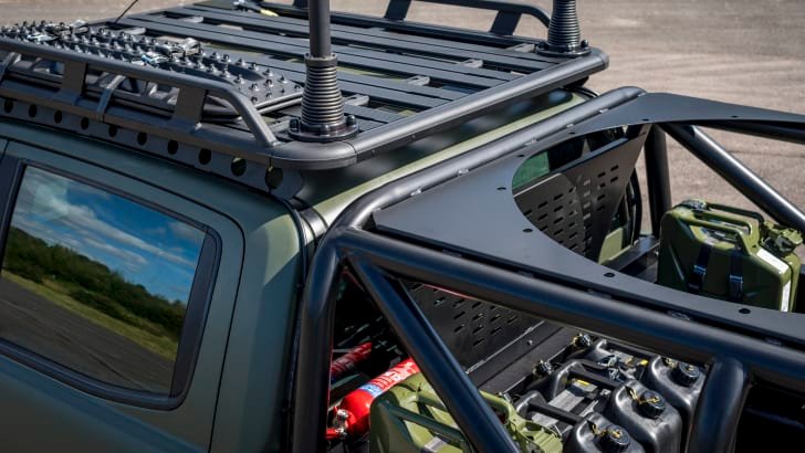 Lightweight but heavy-duty front and rear bumpers are fitted, as are skid plates for the radiator, powertrain and fuel tank.