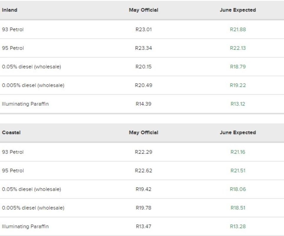 Despite the rand plummeting to a record-low last week, lower fuel prices are on the horizon for June. This comes after South African motorists have had to navigate a hard road of continuous petrol price hikes in recent months.