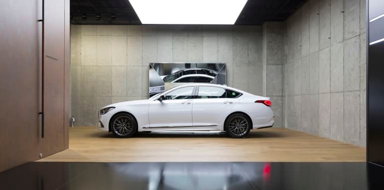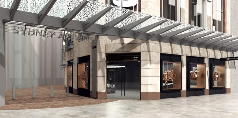 The Genesis showroom inside Sydney’s Pitt Street Mall is in the middle of a pedestrian plaza, a stone’s throw from and Tag Heuer, Chanel, Gucci, Prada, Versace and Tiffany & Co stores.