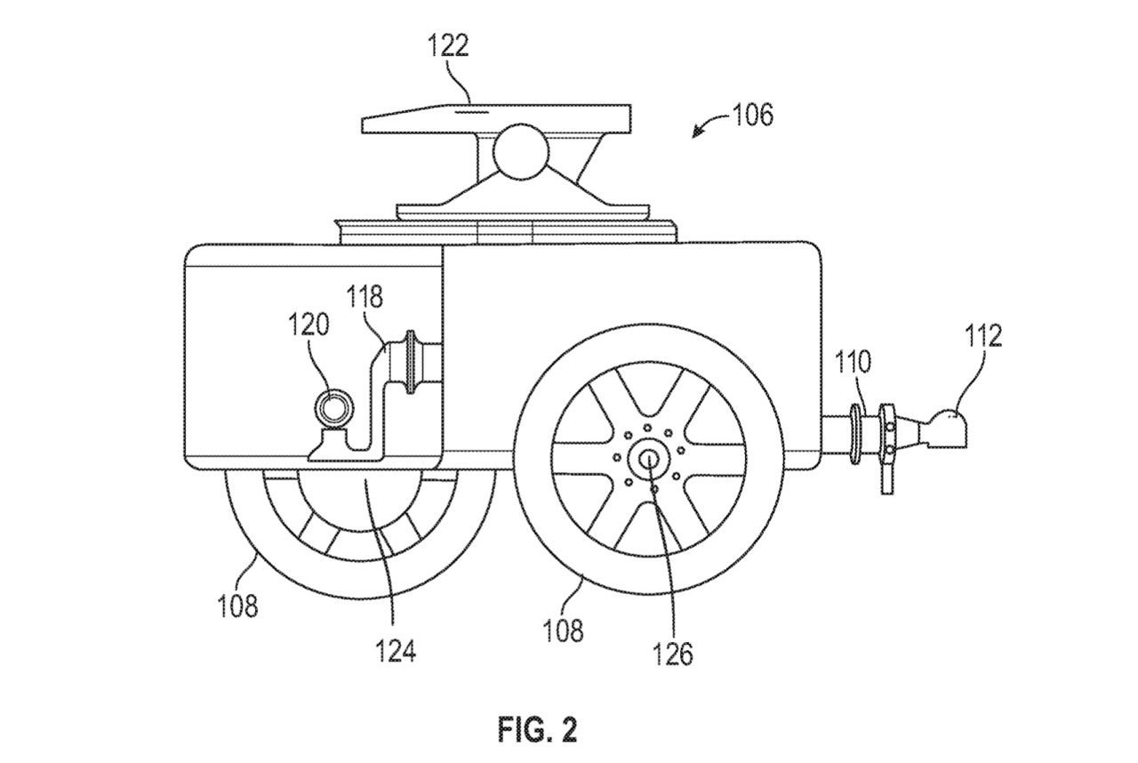 The tow assist device could also make hooking up to a trailer easier. It could move a trailer around by itself, or be guided using a handle, eliminating the need to reverse and line up with a hitch, the patent application states. While GM has not indicated production plans, this would give the automaker an answer to rival Ford’s driver-assist features for connecting a trailer.