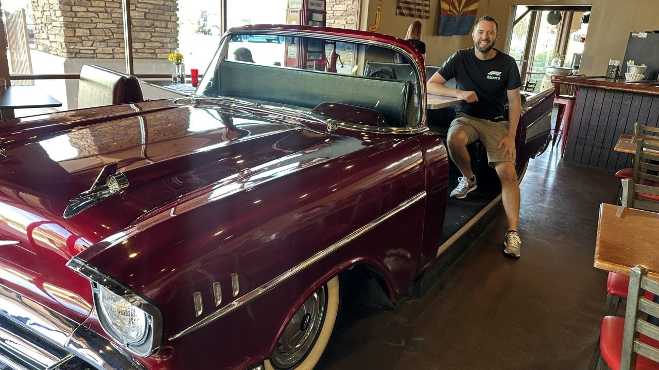 In a perfect world, most car enthusiasts would love to have parking for our classic vehicles in our bedrooms, living rooms, and kitchens. Unfortunately, the majority of typical home floor plans don’t allow for that. Fortunately, there is a 1950s-themed café in Cave Creek, Arizona that can give you the satisfaction of sitting in a booth that is actually made from a cut-up 1957 Chevrolet Bel Air convertible.
