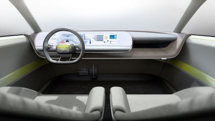 Although the design is pared-back, Hyundai hasn’t skimped on storage space. The company says there’s door pockets designed to house a tablet or notebook, and the material covering the pockets is clear to make it easier to know what’s inside.
