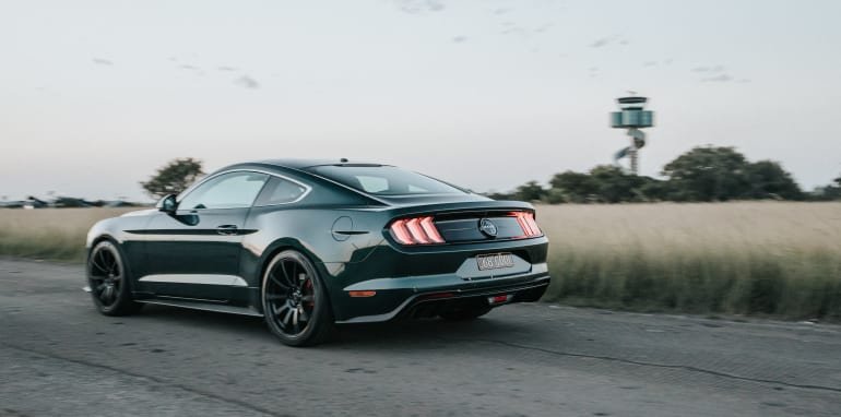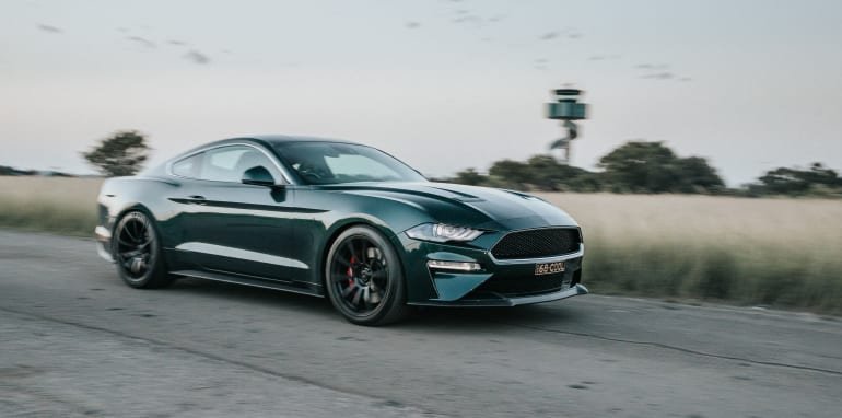 But, when Rob mentioned he had a set of 20-inch forged alloys from the US in the same polished black finish as the standard Bullitt wheels, but shod with extra-wide Michelin Pilot Sport 4S 305/30s down back and 275/35s up front, I was sold.