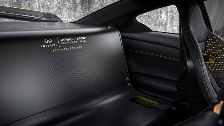 The interior is somewhat less differentiated from the Q60 Red Sport but there’s carbon-fibre trim and yellow accenting à-la Renault’s F1 livery.