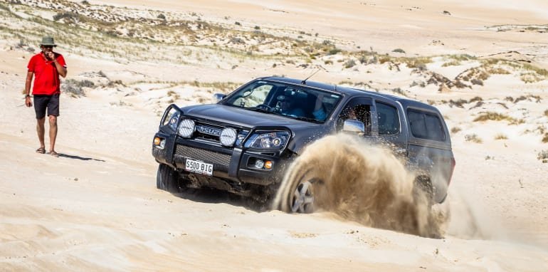 The track snaked its way through the brush, running around the base of some dunes and across scattered rock before it wound itself through fairly hard sand and onto the beach. This was the Sleaford track and it was no match for our Isuzu MU-X, which wasn’t troubled at all. Just to reinforce the point, though, David took the opportunity to run through a demonstration of the correct method of getting out of a fix. We watched and listened and some people made notes. I was to be reminded later that maybe I should have paid more attention.