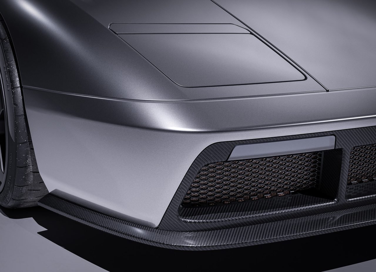 While modern composite materials were used, traditional coach-building methods including hammering and rolling of aluminum were also employed. The pop-up headlights have also made way for more modern LED units revealed via a fold-down mechanism, and most of the rear section has been renewed as well. A highlight of the rear is the set of central tips from a Capristo exhaust system.