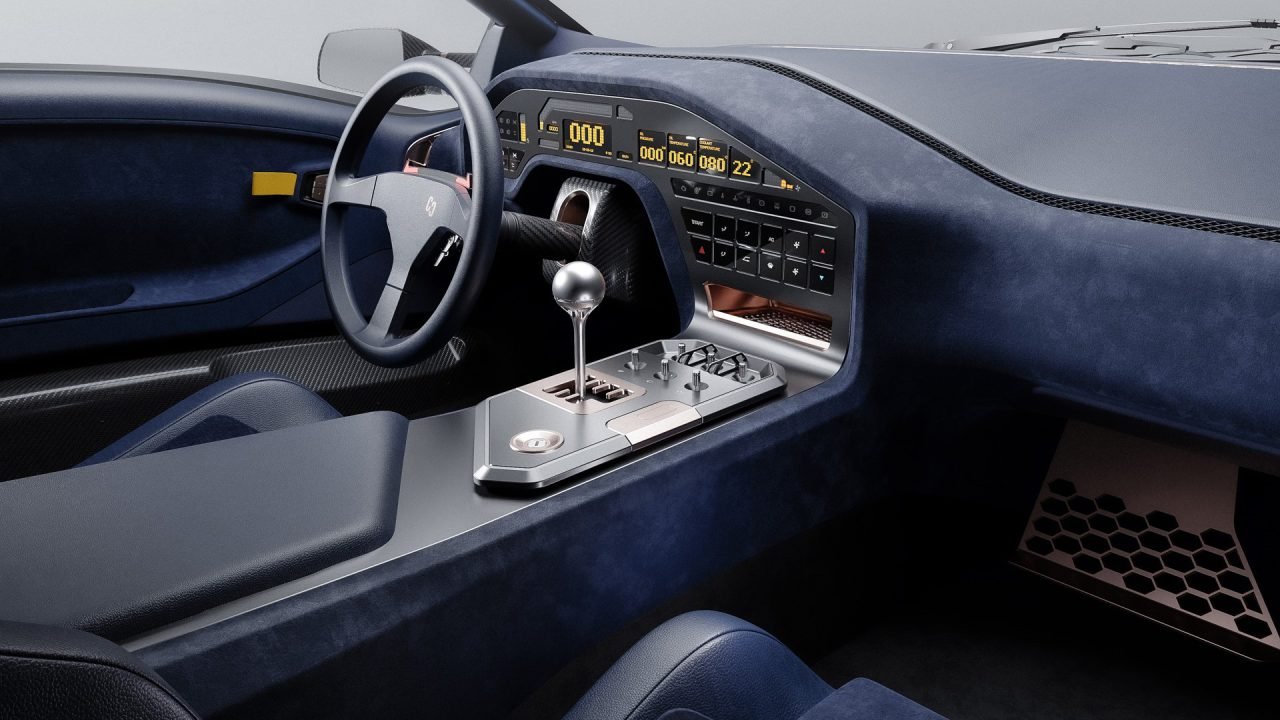 The work done to the interior is just as meticulous. Here, the designers aimed to combine the original, almost minimalist cabin with high-quality materials plus displays and switchgear that resemble something you might find in an old fighter jet. The original analog gauges are gone, replaced by displays with pixelated graphics. Trim materials include Alcantara, carbon fiber, and leather. The use of carbon fiber for the steering column is a nod to the original Diablo GTR, according to Eccentrica.