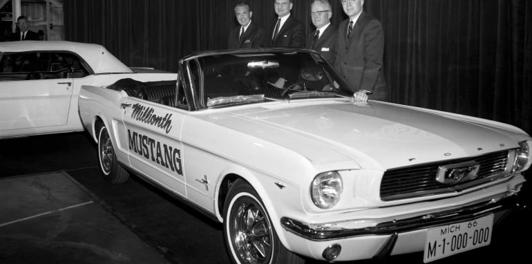 With its sporty styling and attractive pricing, the Mustang became a best selling vehicle. Thanks to its mass-market Falcon underpinnings, a million Mustangs were made in the first two years, generating an estimated billion dollars of profit.