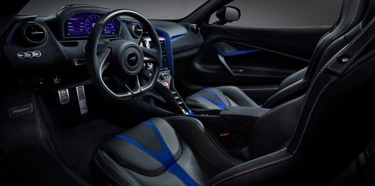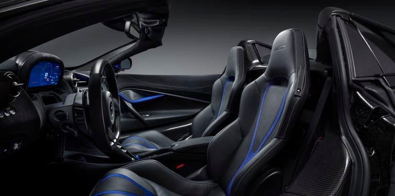 Other MSO bits include a gloss carbon-fibre tonneau cover, 10-spoke super lightweight forged alloys in Abyss Black gloss finish, Burton Blue brake calipers, extended carbon exterior accents (rear deck, diffuser, B-pillars), a sports exhaust, the Electrochromic glass roof panel option, and the Stealth Pack – bringing ‘darker finish’ to the exhaust, airbrake mechanism, exterior window surrounds along with the oil cap cover panel.