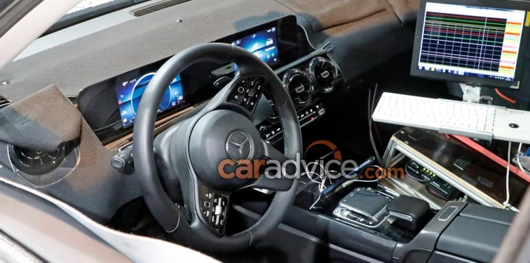 Up front the dashboard with be dominated by a dual-screen setup incorporating the driver’s instruments and the infotainment system, running the company’s new MBUX connected interface.