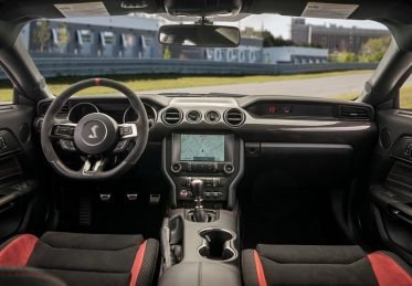 Equipped as standard with a 12-speaker B&O Play sound system, the GT350’s unique interior fixtures consists out of a D-shaped steering wheel with red pin-striping and 12 o’clock marking, GT350R badges and no rear seat to further cut back on weight.