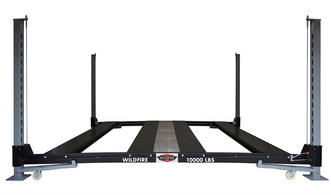 Wildfire has just launched its newest lift, The Wildfire Double Wide. This lift effortlessly lifts two automobiles at one time.