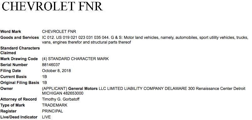 General Motors has renewed its patent for the name “FNR” with the United States Patent and Trademark Office, suggesting that neither the General nor Chevrolet — the brand that used the name on a pair of concept vehicles — are done using the moniker. There’s no word yet on when Chevrolet plans to use the name again, but given its history, it could be used on a new concept that will debut somewhere down the road. The USPTO has yet to grant the patent renewal to GM, though it could only be a matter of time before it does.