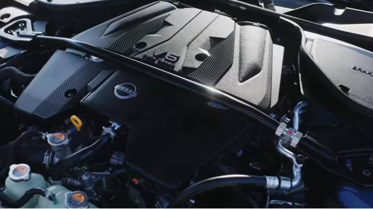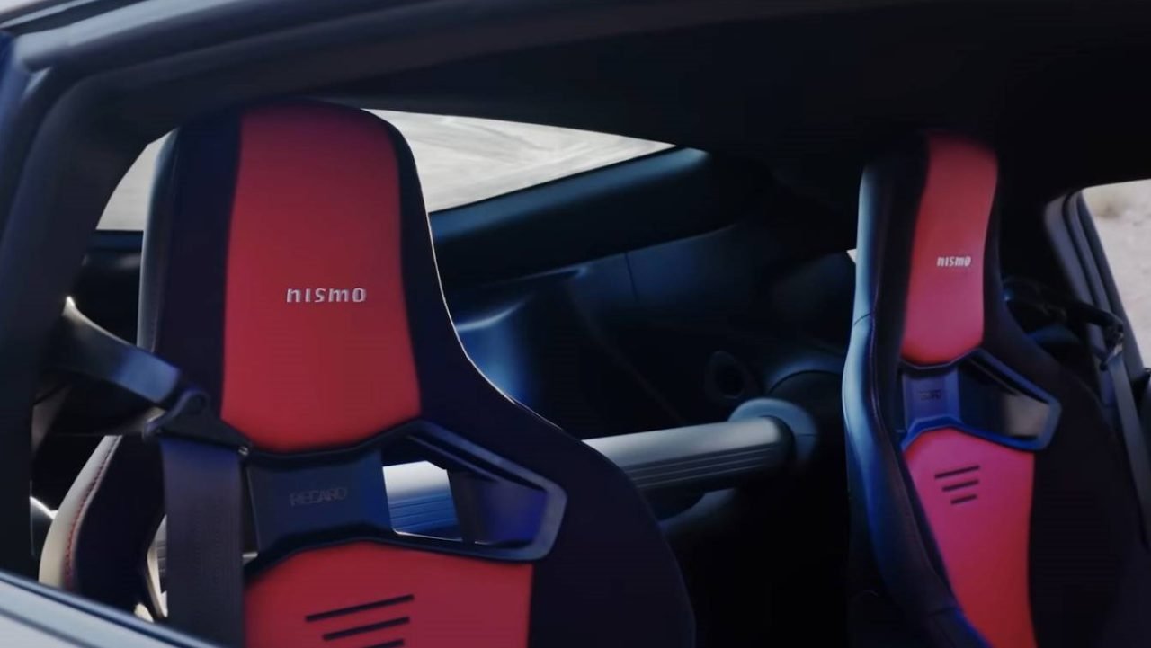 The video teaser reveals a body kit with the trademark Nismo red lipstick around its bottom edges, but it’s toned down compared to the GT-R Nismo and previous Z Nismo models. At the rear, the Nismo has a larger lip spoiler in body color, a larger rear diffuser, and dual exhaust tips. The wheels are Nismo-specific and appear to be 20-inchers wrapped in some variant of Dunlop Sport Maxx summer performance tires.