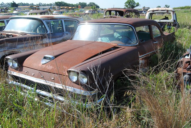 Bud’s Auto Salvage in Aline, Okla., has many interesting vehicles. Adorned with surface rust today, this rather solid 1958 Ford Custom 300 Deluxe was fitted with a dealer-installed Polar-Aire conditioning system.