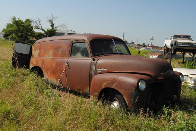 For the most part, sheet metal was solid with a light patina of surface rust, and the clean air of this part of the Sooner State has helped to preserve the chrome and other bright metal trim pieces. Those cars that are designated for parts are grouped together along neatly aligned rows organized by make and, as much as possible, in groups of similar year models.