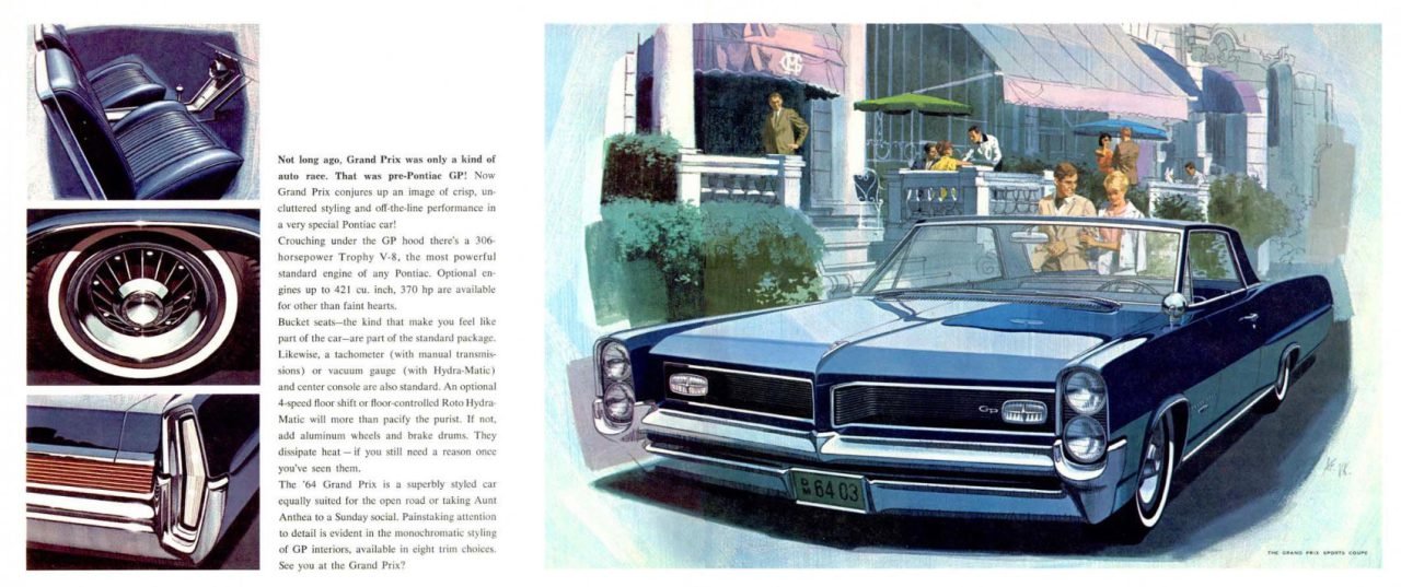 The full-size 1964 Pontiac was in its third year of its generation, and its second year featuring vertical headlights. Notable were the fuller front and rear ends consisting of oval headlight bezels and large boomerang-esque taillights, respectively. Along the sides, the big Ponchos featured little adornment. And since Pontiac was not granted a unique model like the Riviera, it created its own distinctive personal-luxury coupe with the classy Grand Prix, whose strength lied by bucking convention (though unique styling features certainly didn’t hurt).