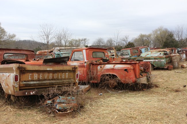 There are a lot of trucks in the yard including this row of 1963-1966 Chevrolets. Another nearby row features Chevy trucks from 1967-1972.