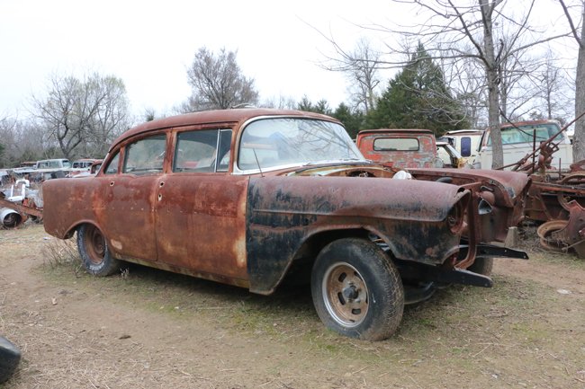 There are several Tri-Chevys in the yard including this 1955 four-door.